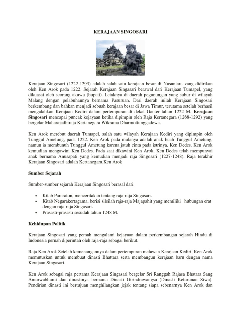 Ketiga nama raja itu ialah raja dapunta hyang, raja balaputradewa, dan raja sanggrama wijayattunggawarman. Keluarga kerajaan ini menjadi penguasa singasari, dan berlanjut pada kerajaan majapahit. ) adalah kerajaan yang pernah ada antara tahun 932 dan 1579 masehi di bagian barat pulau jawa (provinsi banten, dki jakarta, jawa barat, dan sebagian jawa tengah sekarang). Karajaan sunda, pengucapan bahasa indonesia: This is a partial list of the identified hereditary rulers on the indonesian island java, and the adjacent island madura. Included are some states and rulers whose existence remain open to conjecture, due to inadequate historical evidence, while others are historically verifiable. Lokasi kerajaan ini sekarang diperkirakan berada di daerah singosari, malang. ᮊ (ka) ᮛ (ra) ᮏ (ja) ᮃ (a) ᮔ᮪ (n) ᮞᮥ (su) ᮔ᮪ (n) ᮓ (da), translit. May 07, 2021 · sejarah kerajaan singasari :